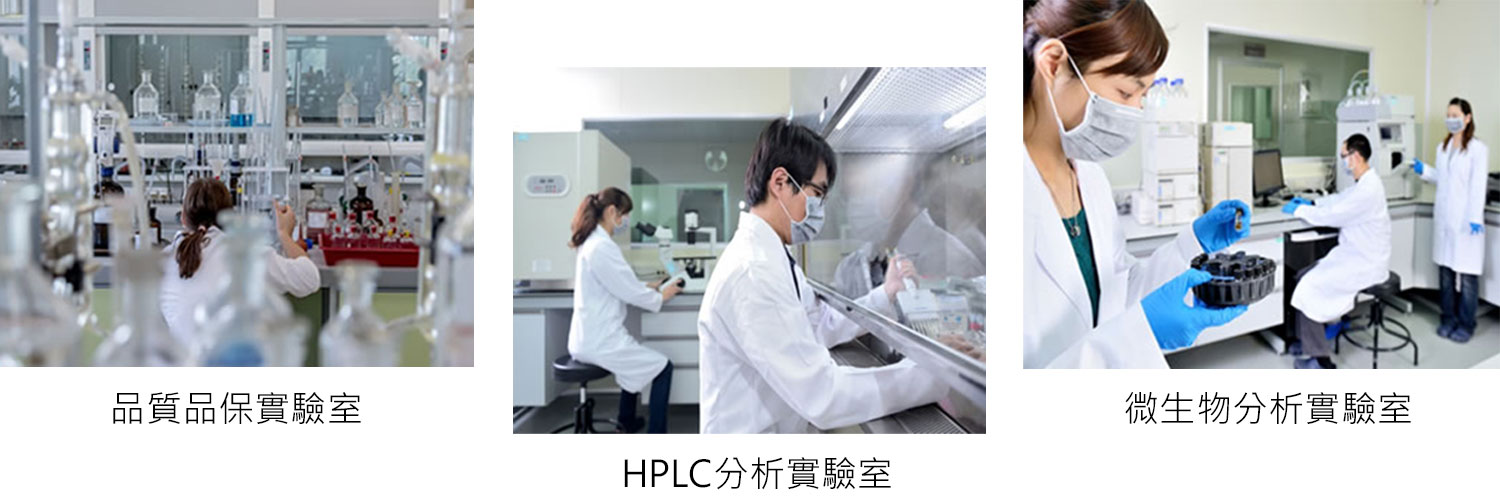 十萬級藥廠規格無塵空調淨化設備,維持每一段的生產及包裝區域無落塵污染。使用逆滲透過濾循環系統淨化設備,生產過程使用水質達到無菌、純淨雙重安全的藥廠標準等級。