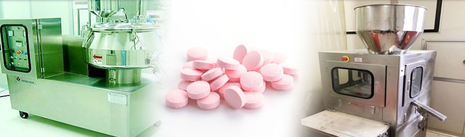 醫藥級高速打錠機。原料經適當造粒後,可依主成分比例打錠,最後以指定之膜衣顏色噴色覆蓋裸錠,膜衣可協助裸錠隔絕水分,避免氧化,幫助避光,不沾手及美觀功用,多種模具樣式可選擇,並提供客製化模具設計開發服務。